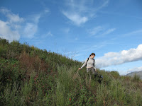 Registámos tudo e decidimos voltar para trás. Já não se via nada bem. Eles achavam que era por um lado e eu por outro... Já estava a ficar assustada, a pensar que ainda nos perdíamos no mato, como se não bastasse de aventuras por hoje! Por fim, lá demos com a estrada... O Tiago para quebrar o gelo, disse: Já não é desta que dormimos no mato!