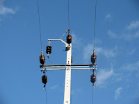 2)a voltagem da linha (a tensão de uma linha pode ser deduzida pelo número de discos isoladores das amarrações. Cada disco isola aproximadamente 15 kV, aplicando-se mais um disco de segurança, ou seja, numa linha de 30 kV existem 3 discos isoladores. As excepções dão-se quando a linha passa junto a uma estrada ou junto a residências, em que existem 2 ou mais discos de segurança);