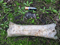 Como escalas para o fotografar, uso uma pilha e um osso de ovelha que tinha encontrado. Em vez de O Ratinho, a Mosca e o Homem, temos: O Ratinho, a Pilha e o Osso!!