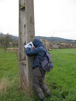 Só conseguimos fazer 5 apoios. Os terrenos estão por demais aguados e enterramos as botas a cada passo. Desistimos... Voltamos para trás, a corta-mato, em direcção à aldeia.